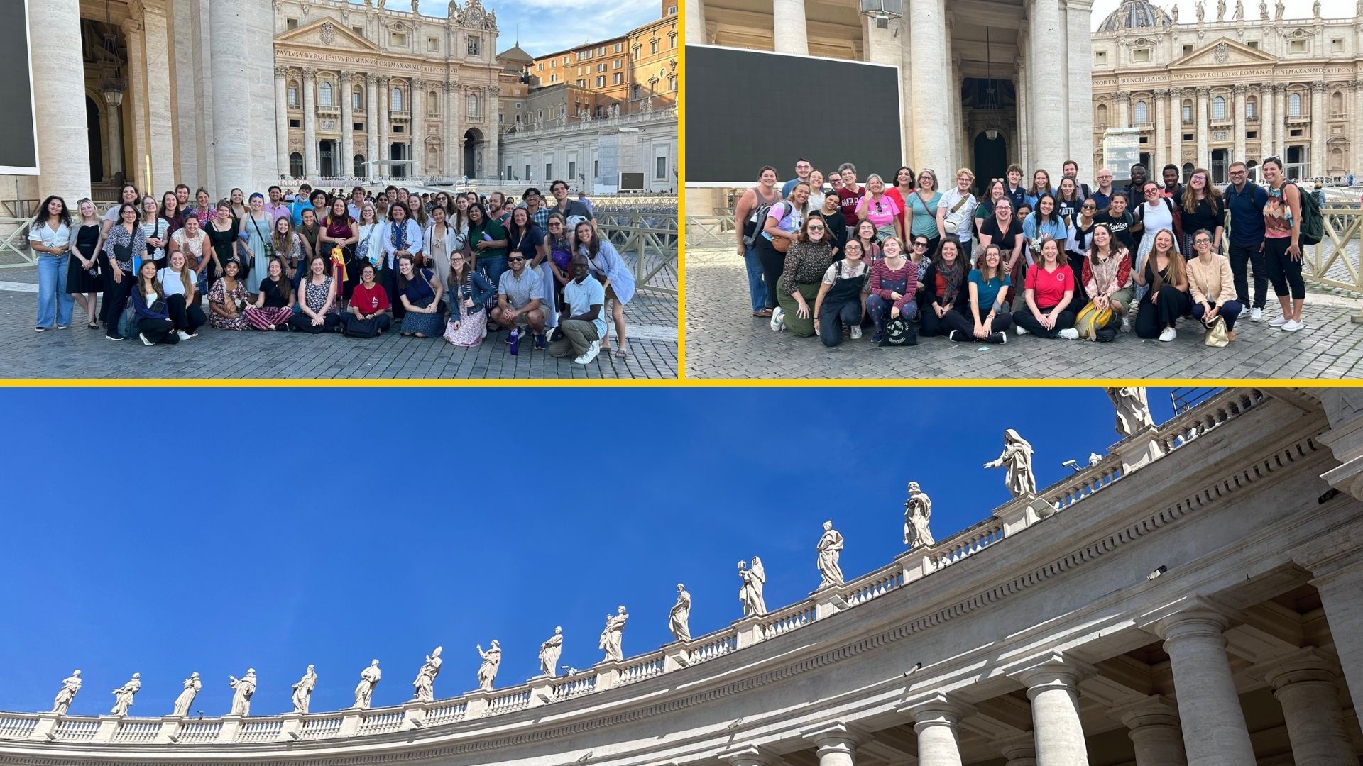Discerning Deacons led some 80 students and their professors and campus ministers visiting Rome as a part of CENTERS (Catholic Education Network to Encounter Rome and Synodality) on a prayerful tour learning about women saints in the St. Peter’s Square Colonnade.